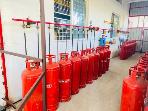 Reticulated Piped Gas System is supply of Liquefied Petroleum Gas (LPG) through a network of pipelines, from a centralized cylinder bank / manifold system or a Bulk Installation (Bullet) to customer (end user’s) kitchen / Bath room / Heating Appliances.