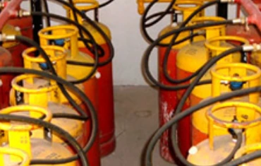 In such type of installations, Cylinders are connected to the Manifold system in series. The Vaporized LPG is directly drawn from the cylinders with Natural Vaporization Process. Vaporized LPG is passed through the properly designed 1st Stage & 2nd Stage Pressure Reducing Station. This LPG VOT facility is normally recommended for Low utility consumption per hour of LPG.